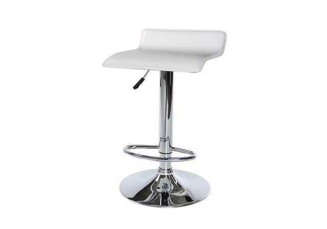 Metro Bar Stool - White - Exceptionally clean and modern with a sharp contrast, the Metro Collection can accommodate a great amount of space with a simple design and convergent style. Dimensions: 16.5" L x 17" D x 26" - 34.5" H. Rental price associated with this item: $35.00.