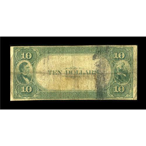 <B>Metropolis, IL</B></I> - $10 1882 Value Back Fr. 577 <B>The National State Bank</B></I> Ch. # (M)5254<BR>A few pinholes and aging are seen on this early note from here. Only five large size are known and this <B>Very Good</B></I> example has been off the market for some time.<BR><I>From The Lincoln Collection</B></I><BR><BR><b>Shipping:</b> Coins & Currency (<a target="_blank" href="http://www.heritageauctions.com/common/shipping.php">view shipping information</a>)