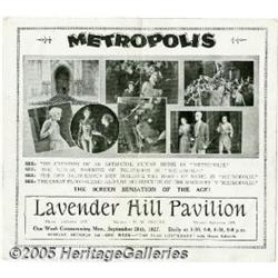 <B>Metropolis (UFA, 1927)</B></I> British Herald. This impressive four-page Herald lists the Lavender Hill Pavilion as the theatre where it showed September 26, 1927. It shows signs of use including many creases and being fold in half at one time. Very Good.