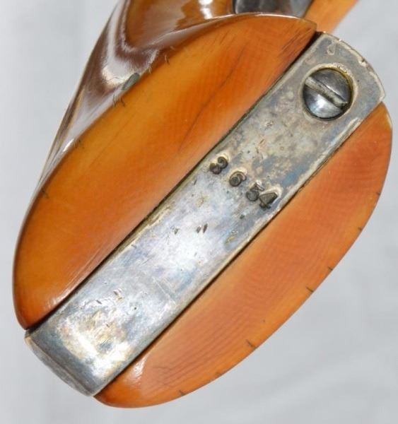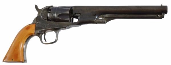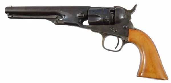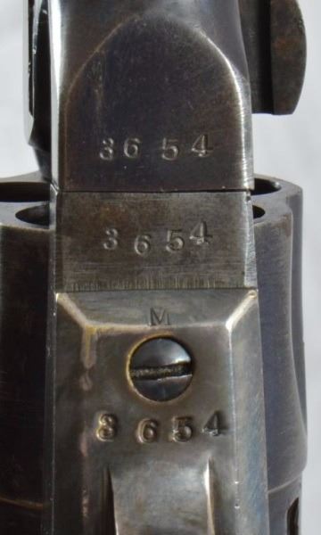 Serial no. 3654 .36 caliber in good working condition with traces of finish over a smooth brown patina