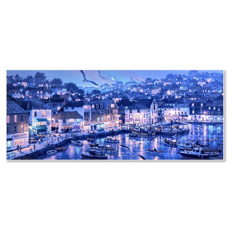"Mevagissey" is a limited edition publisher's proof on stretched canvas by Teppei Sasakura, numbered 5/5 and hand signed by the artist. Includes Letter of Authenticity. Measures approx. 18" x 44" (image).