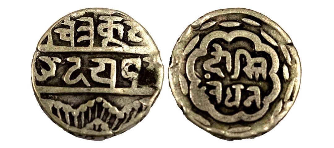 Mewar state, Swarupshahi series, Dosti Landhan Issue, Silver Rupee, Udaipur Mint, no date, issue of