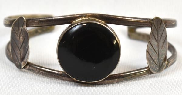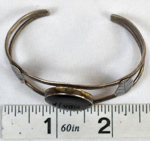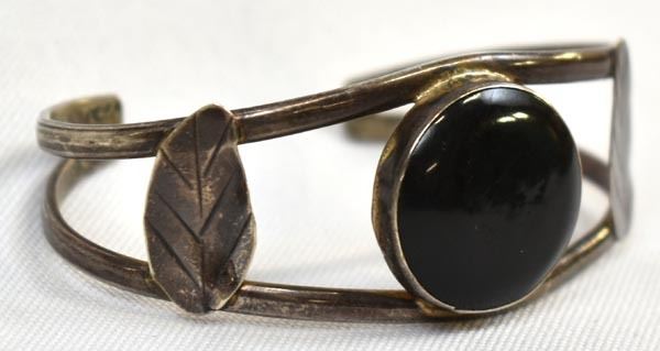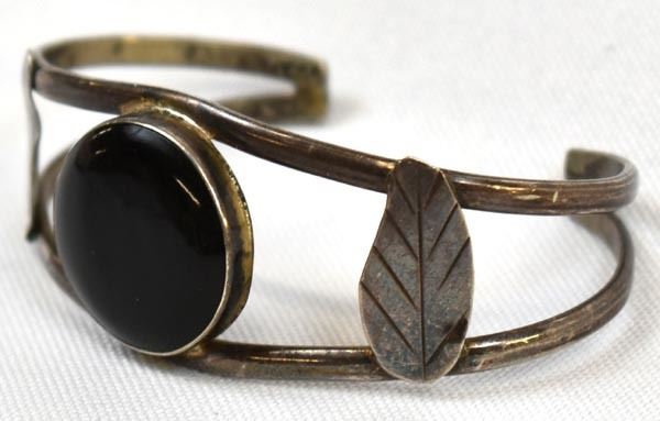 Mexican Alpaca Onyx Bracelet, inside measures 6'' which includes the opening x 1''W