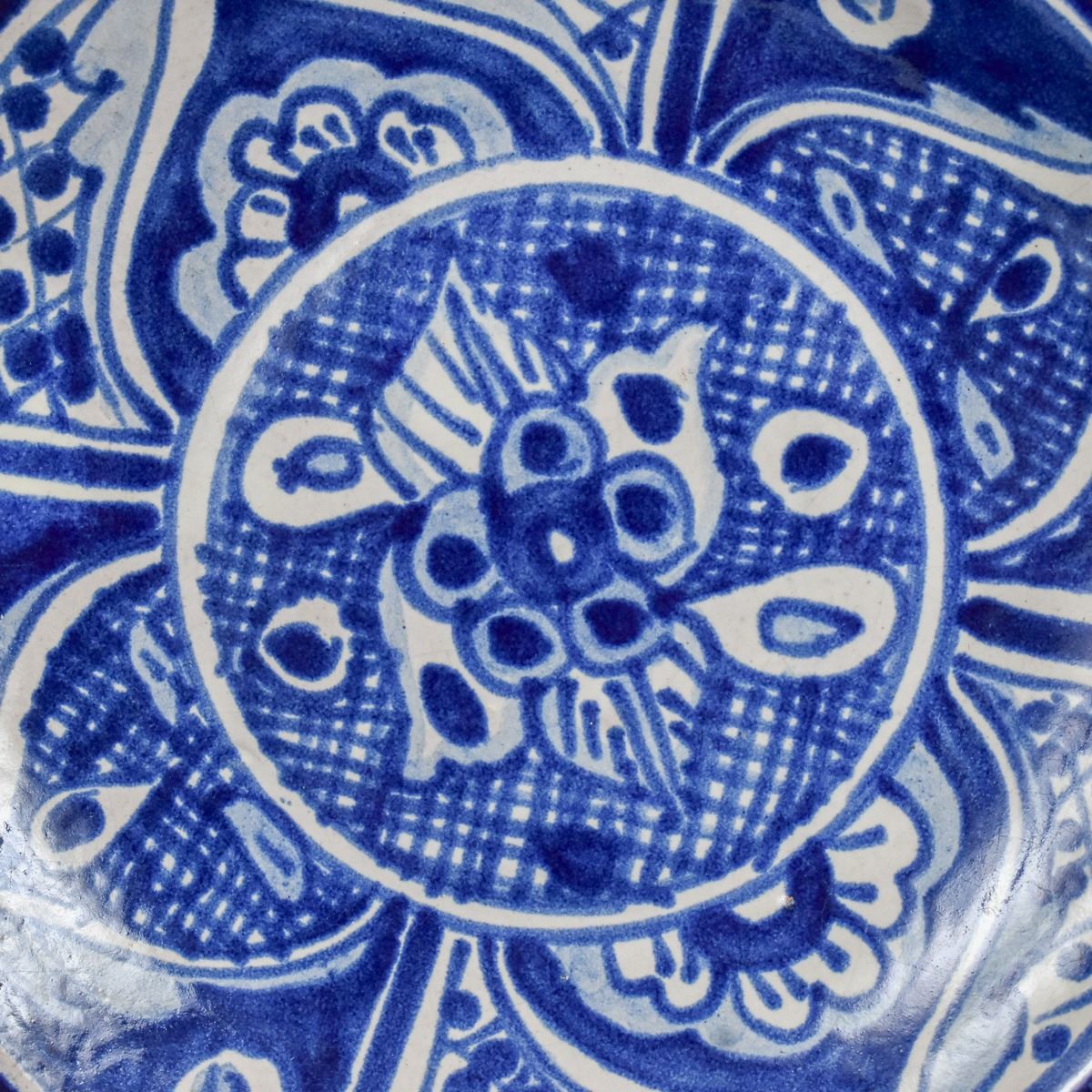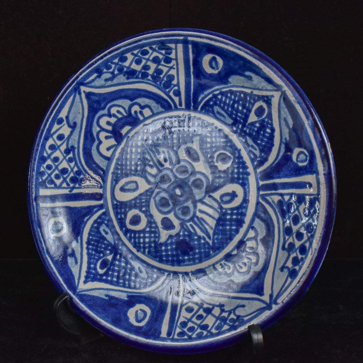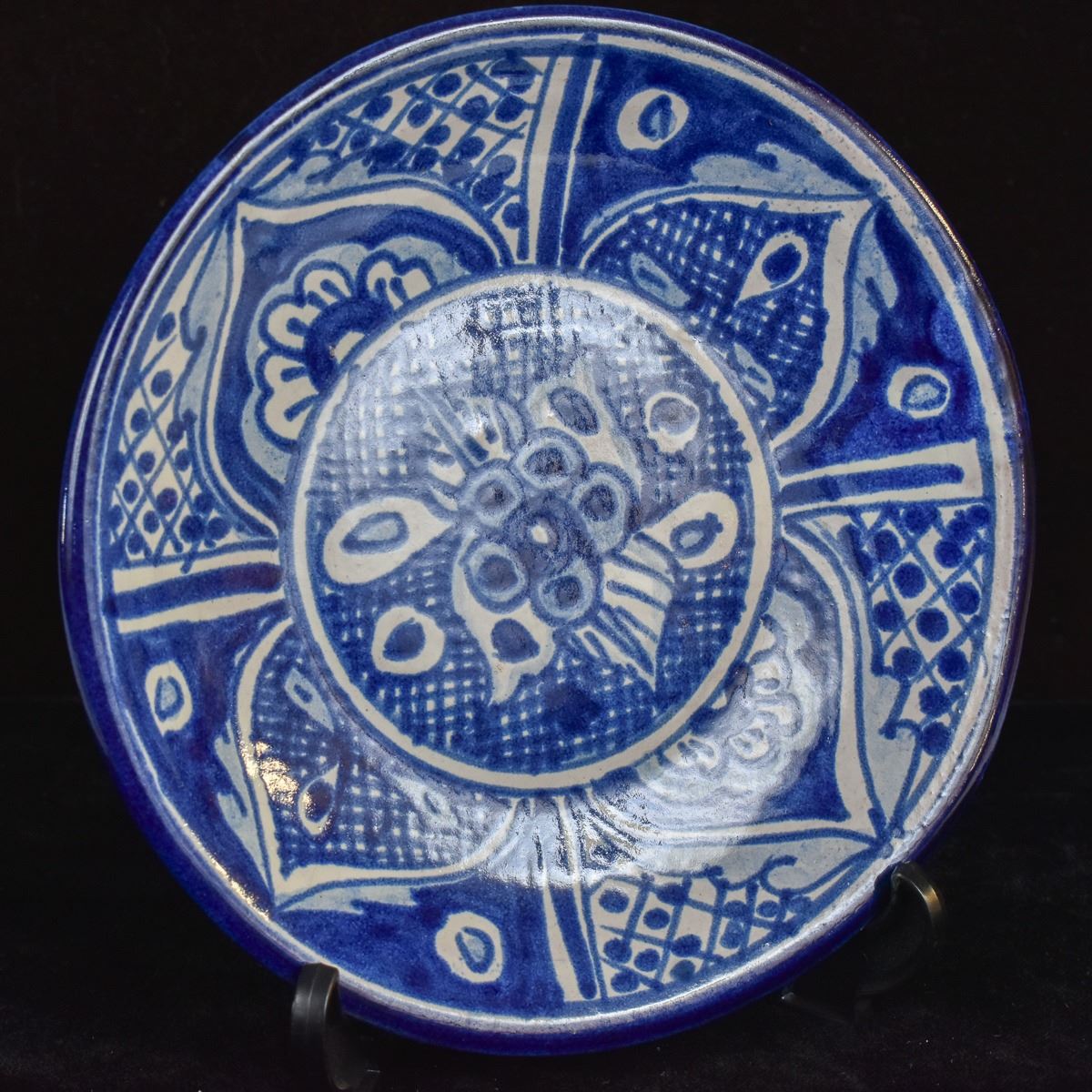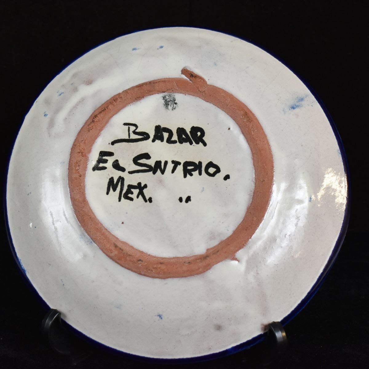 Mexican Blue and White Pottery Plate. On bottom is written 'El SNTRIO. MEX' This piece measures 6'' in diameter.
