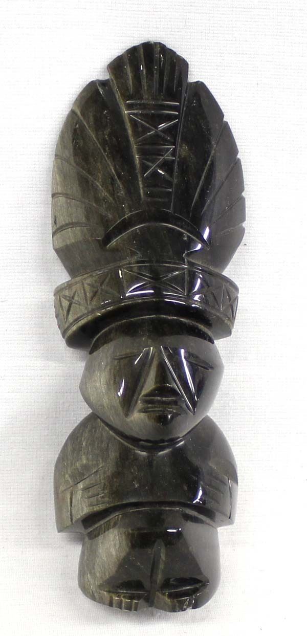 Mexican Carved Golden Obsidian Aztec Statue, measures 2.5'' x 7'' x 2.5'', beautiful sheen