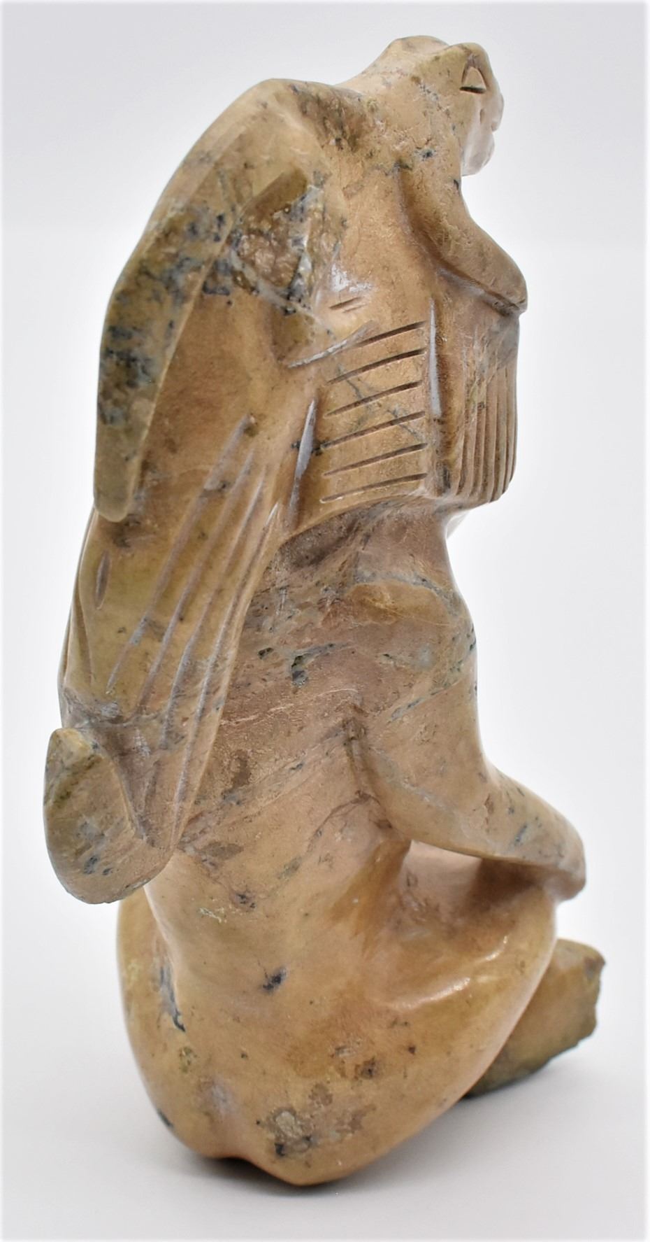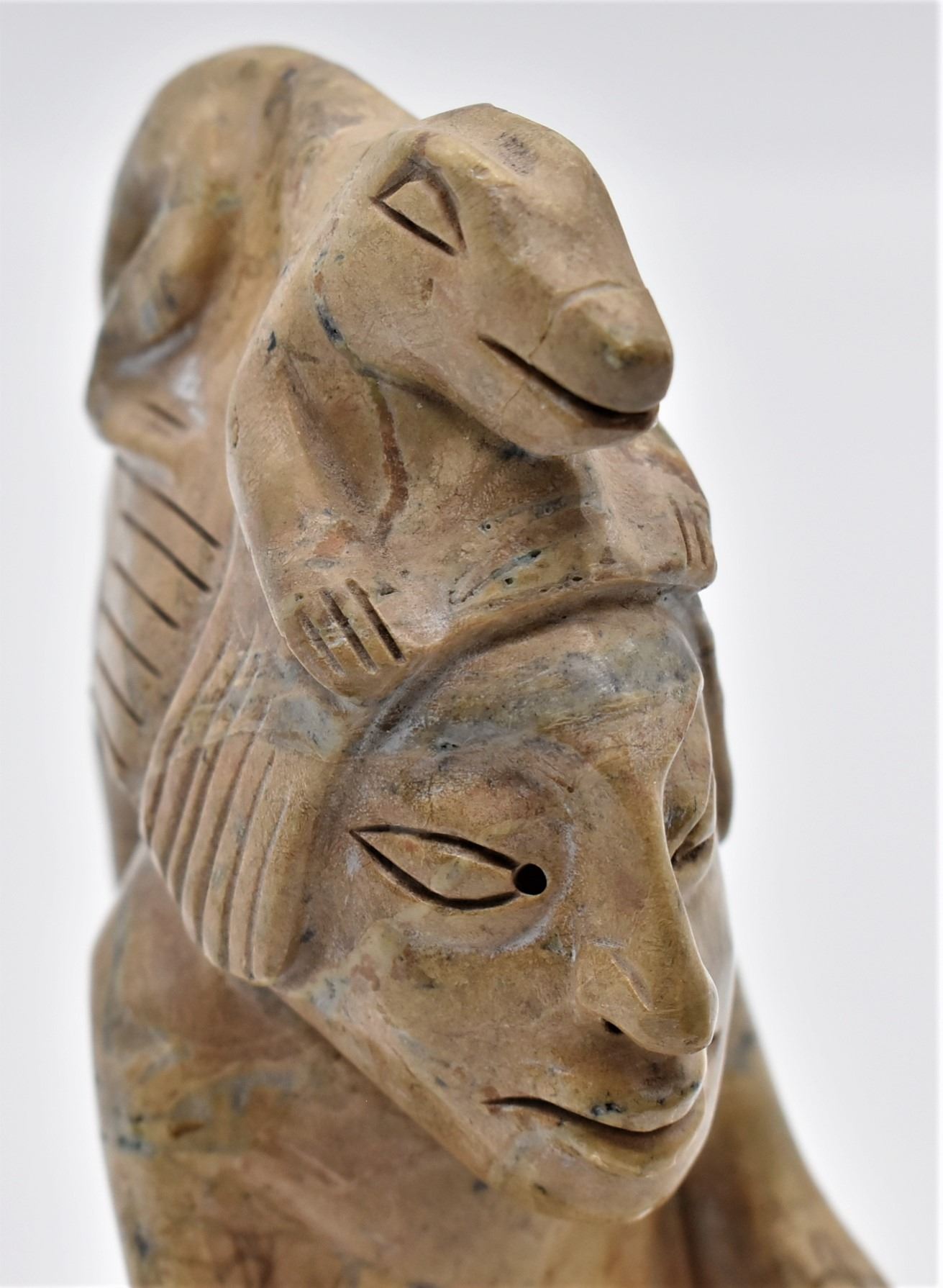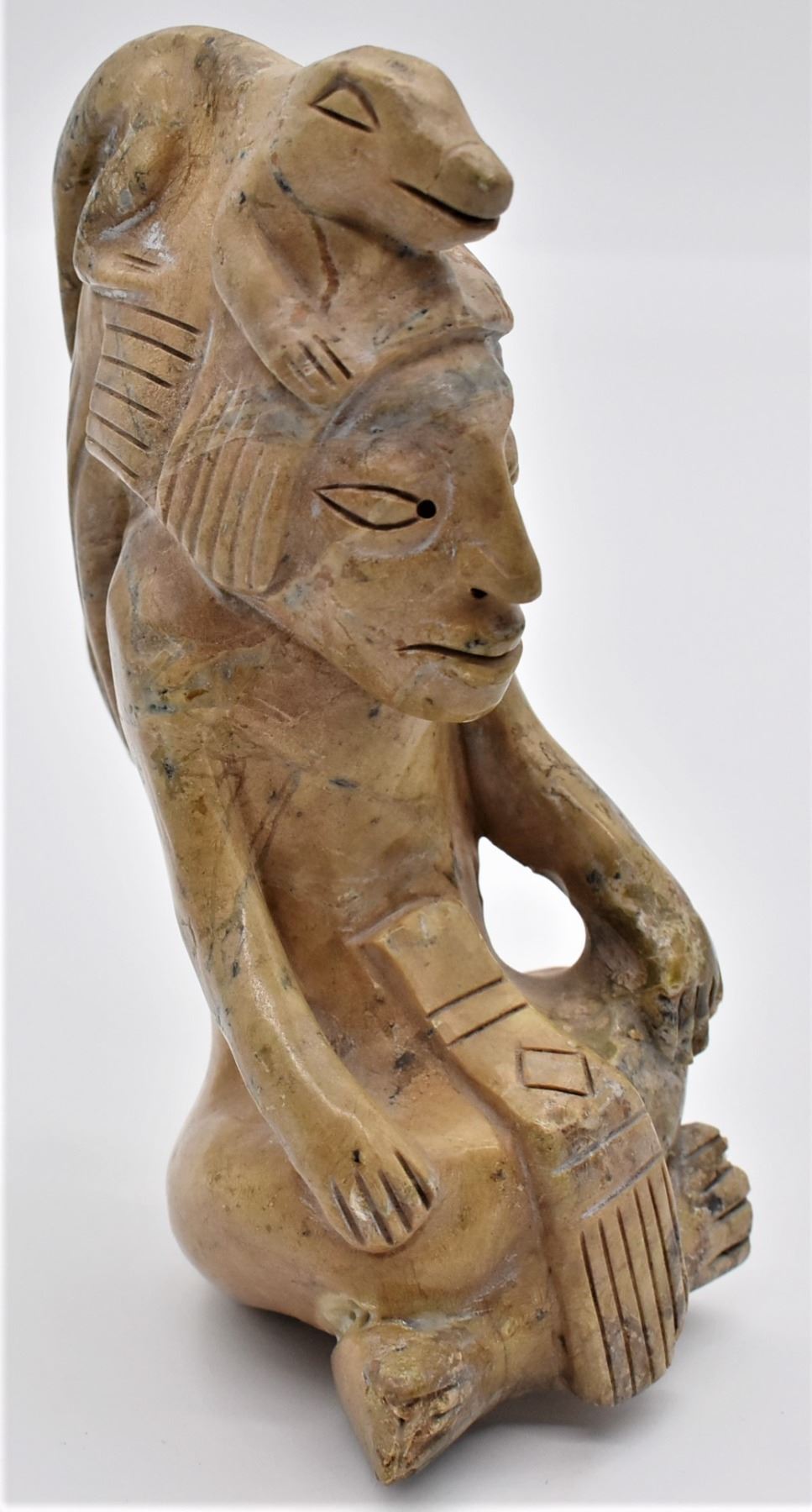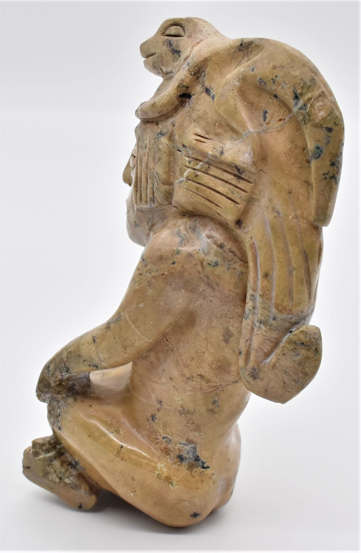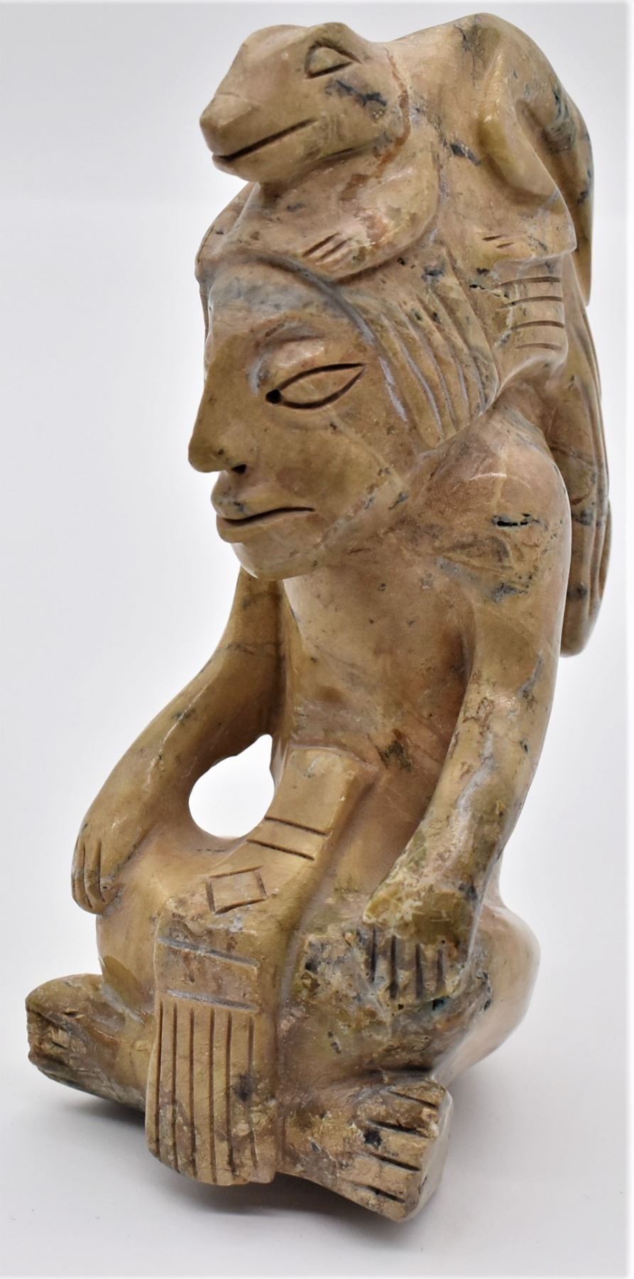 Mexican Carved Soapstone Mayan Figurine, measures 6.25''H x 2.75''W x 4''