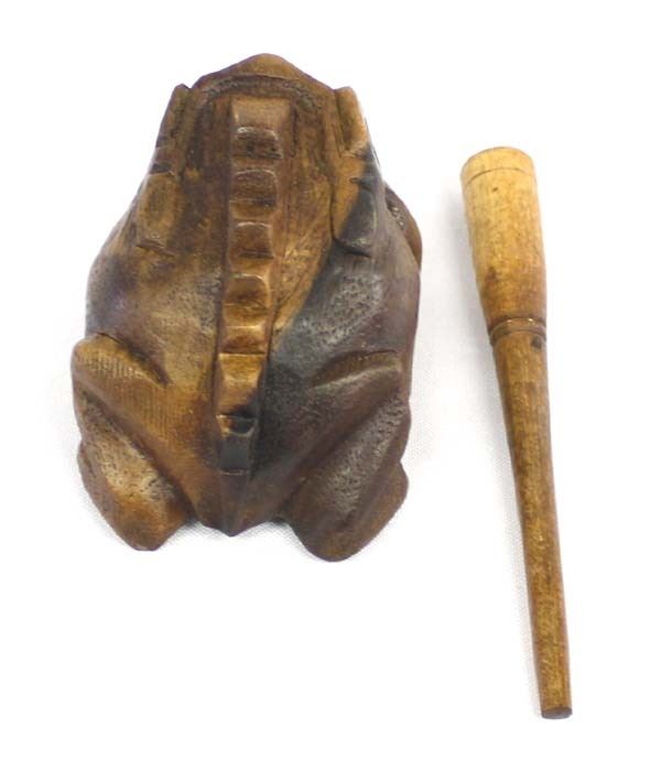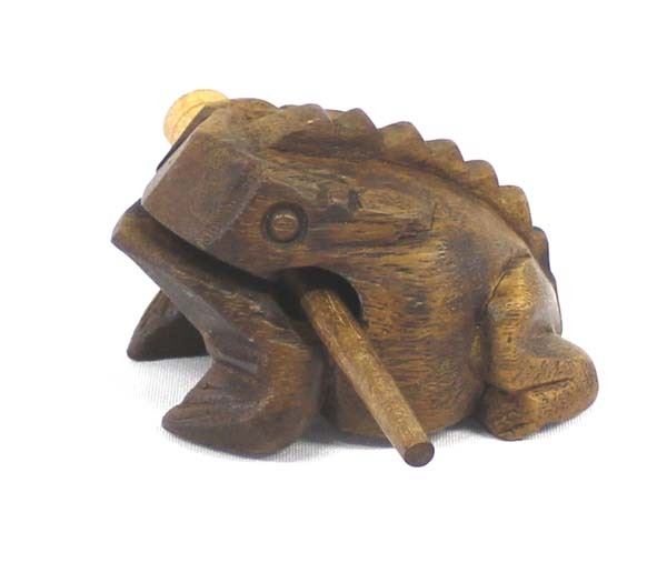 Mexican Carved Wood Singing Toad Rasp Instrument, measures 2.5'' x 4.5'' x 5.75''