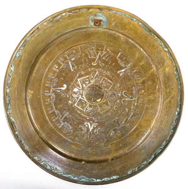 Vintage Mexican Copper Plate, features the Mexican Calendar, measures 11.5''D, ready to hang, rim is slightly bent in one area