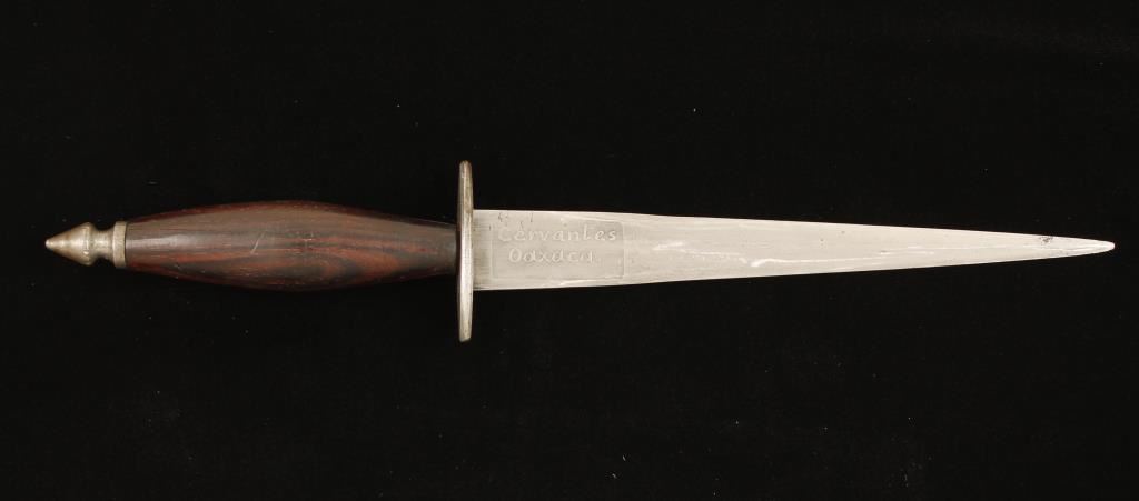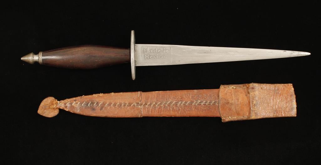 "Made in Mexico" & "Cerzantes Oaxaca" on blade with tooled leather scabbard