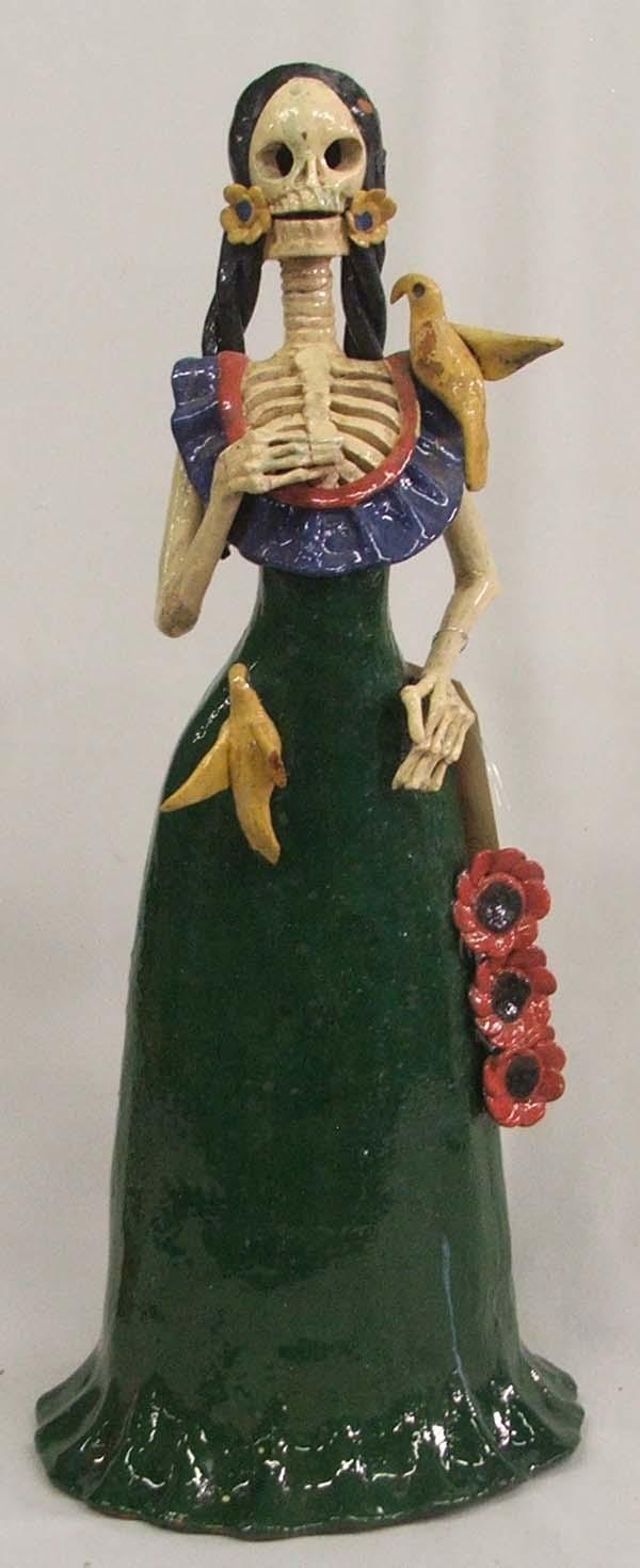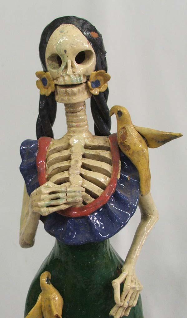 Large Day Of The Dead Figure MUST BE PICKED UP! Birds have broken wings. Measures approx. 22''H x 8 1/2''W x 6 1/2D. Some parts glued. MUST BE PICKED UP!
