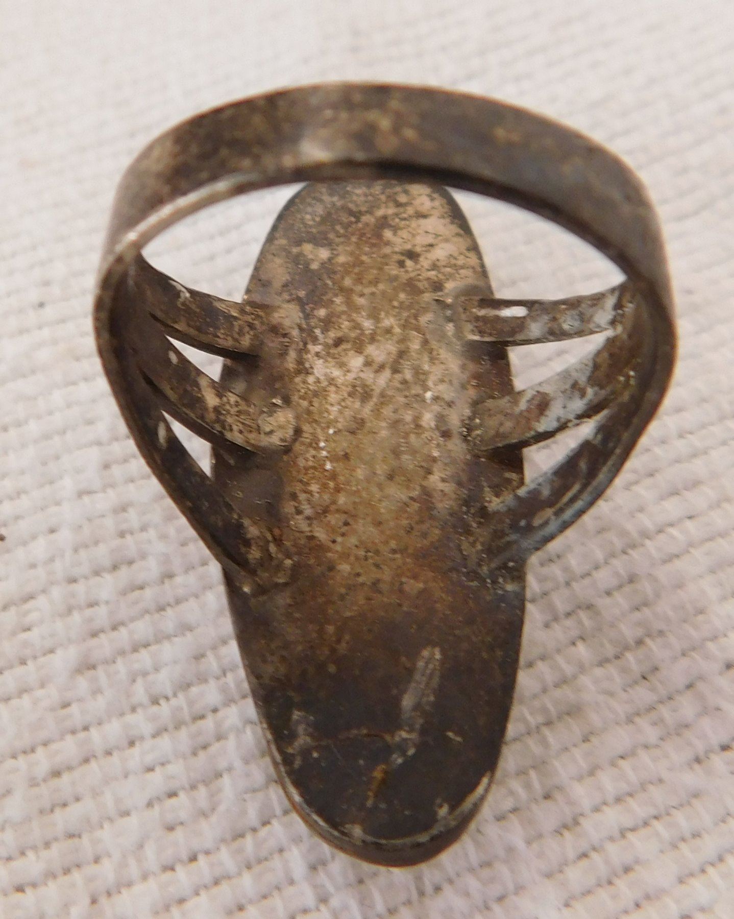 Mexican Fire Opal Bracelet & Ring, circa 1940s. Made of sterling silver, fire opal and turquoise, the bracelet is 6" inside measurement with a 1" opening. Ring is size 9. Nice stones, items weigh approx. 35.9 grams total. Condition: Some patina, see images. Shipping: $14.50 w/insurance and signature.