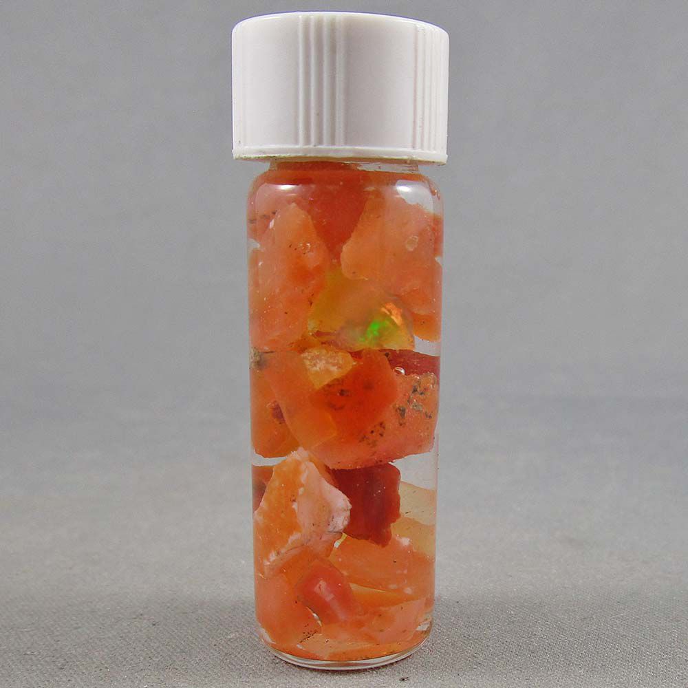 Fire Opals from Mexico. Approx. 20 opals in the jar. Size range 5mm - 15mm Jar size 1.5"