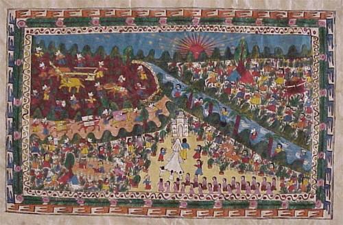 Mexican Folk Art, WEDDING SCENE, c. 1970, gouache on hand-made paper, 16 x 23 ½”, signed “Celia...