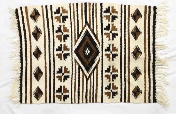 Mexican Fringed Wool Textile Rug, measures 27'' x 36''