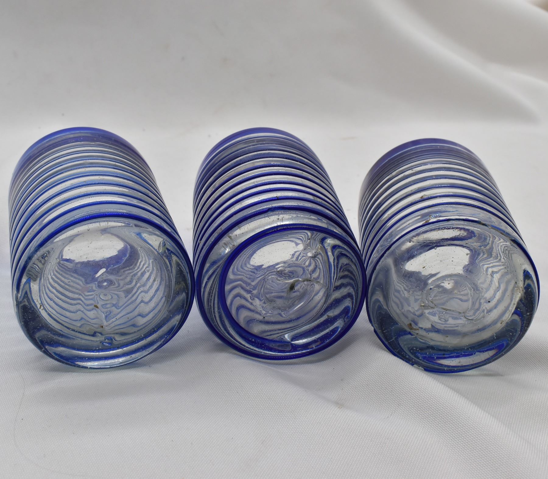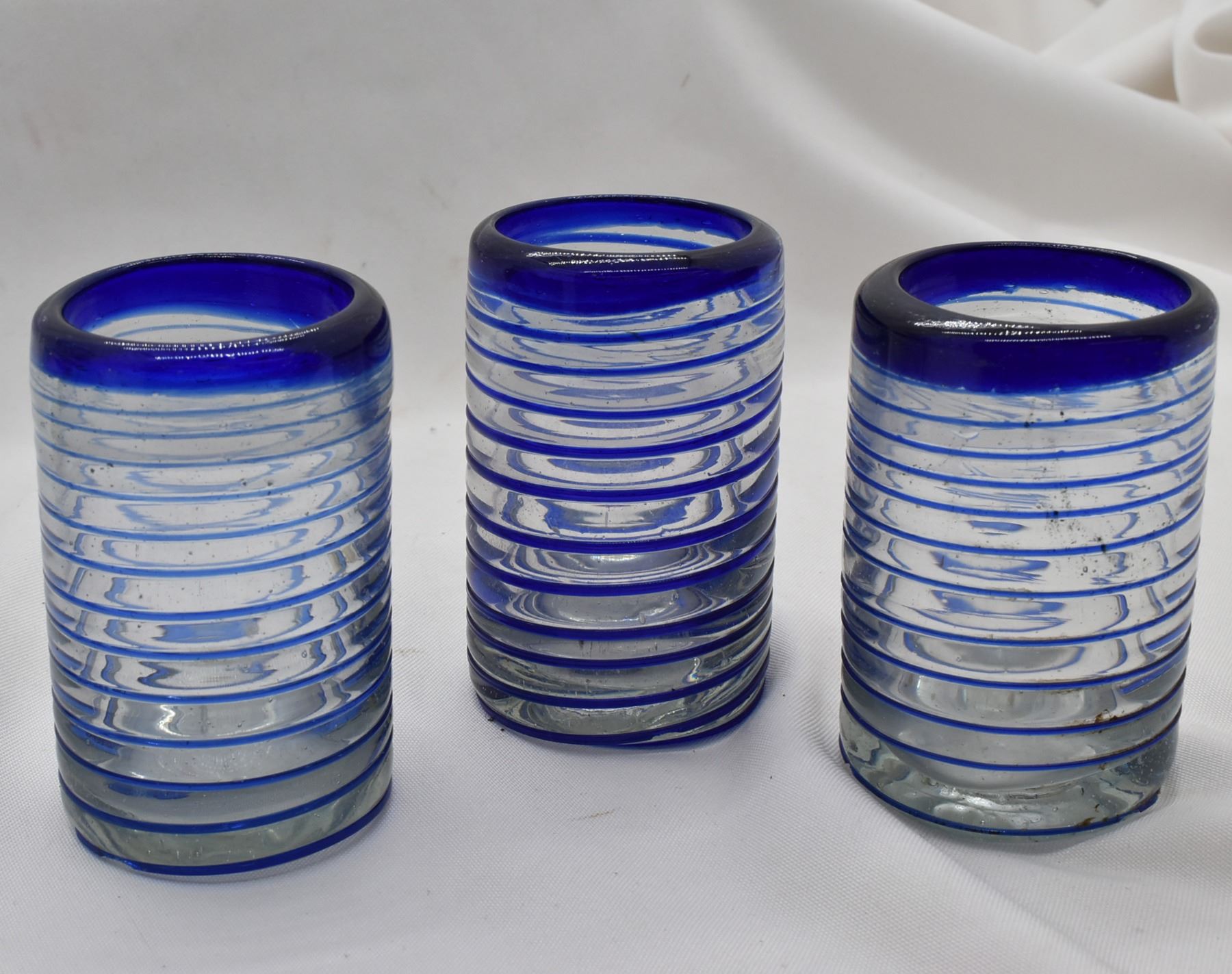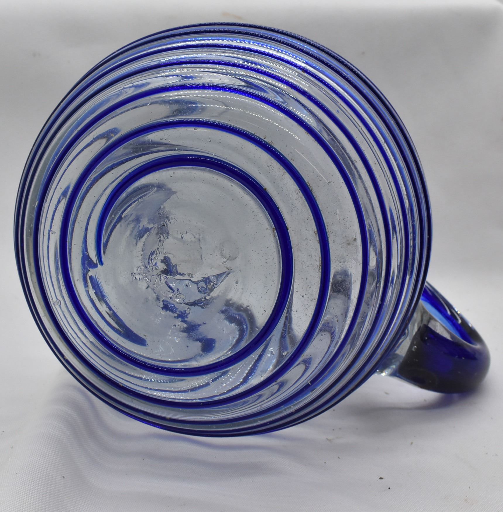 Mexican Glass Pitcher and 3 Matching Glasses, pitcher measures 6.5''D x 6.75''H x 8''