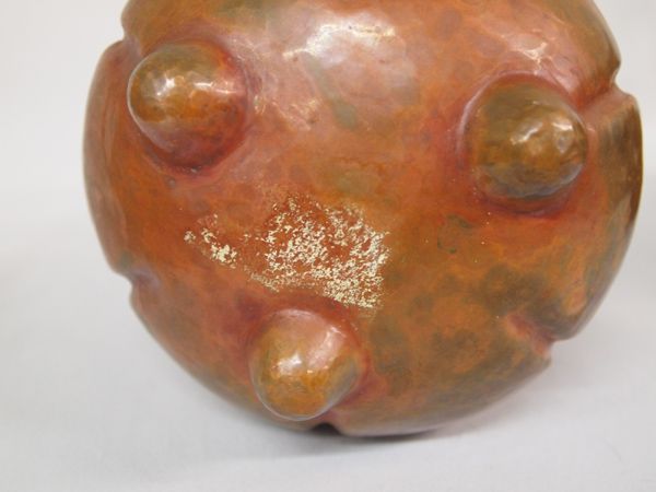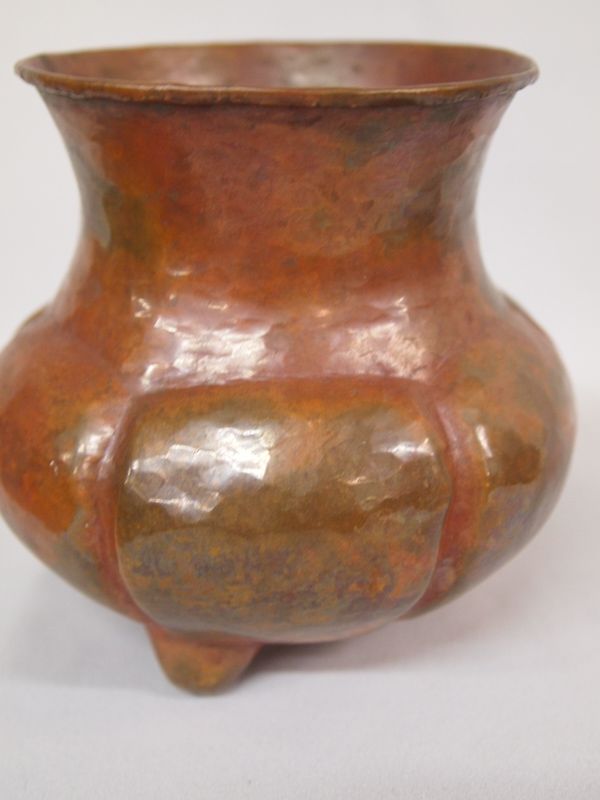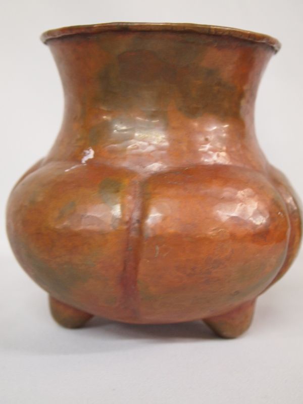 Mexican Hand-Hammered Copper Olla.  Sweet small olla, hand-hammered copper from Santa Clara de Cobre, Michoacan, Mexico.  Measures 4 1/2'' high x 4 1/2'' wide.  Beautiful workmanship!