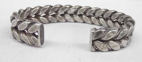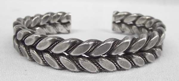 Mexican Heavy Silver Braid Style Bracelet. 6.2'' wrist size x .5'' wide and 1/8'' thick. Braided rope pattern between larger braided style design. Hallmarked ''sterling'' and ''Mexico''.