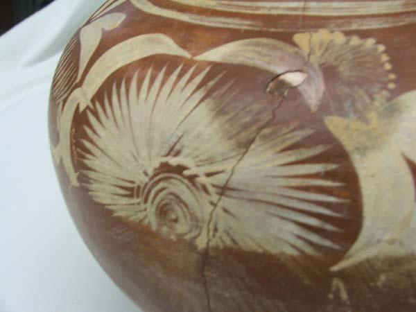 Mexican Huastecan Olla. measures approx. 9 x 11.5''. Buyers Pay Actual Shipping and Handling Charges(see terms and conditions for more information).