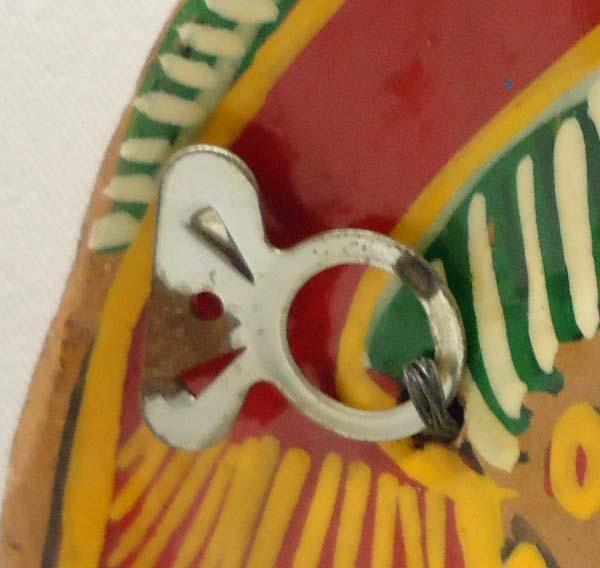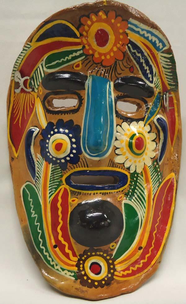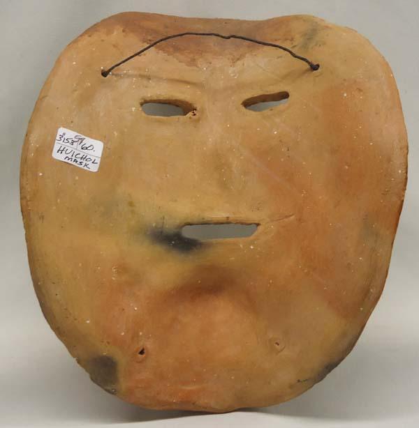 Mexican Huichol Ceramic Mask. Measures approx. 9''H x 6 3/4''W. Wall hanging attachments on the sides of mask, see photo. Buyers Pay Actual Shipping and Handling Charges(see terms and conditions for more information).