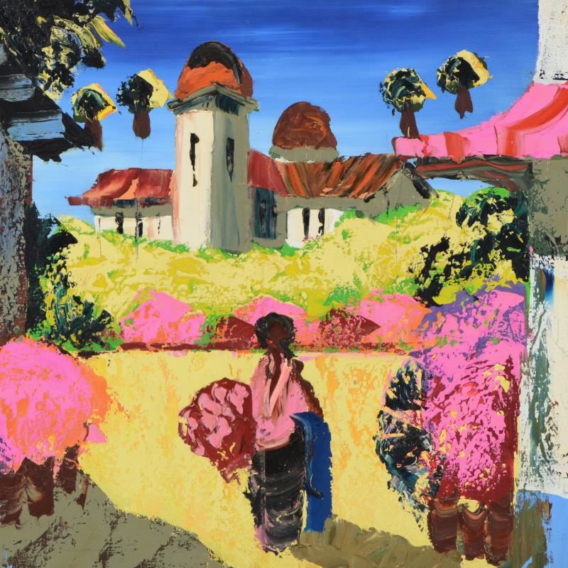 "Mexican Market" is an original oil painting on stretched canvas by Paul Blaine Henrie (1932-1999), hand signed by the artist. Includes Certificate of Authenticity. Measures approx. 48" x 30" (image). Due to the age of this piece and the way it was stored, there are minor sings of wear, particularly on the corners and edges.