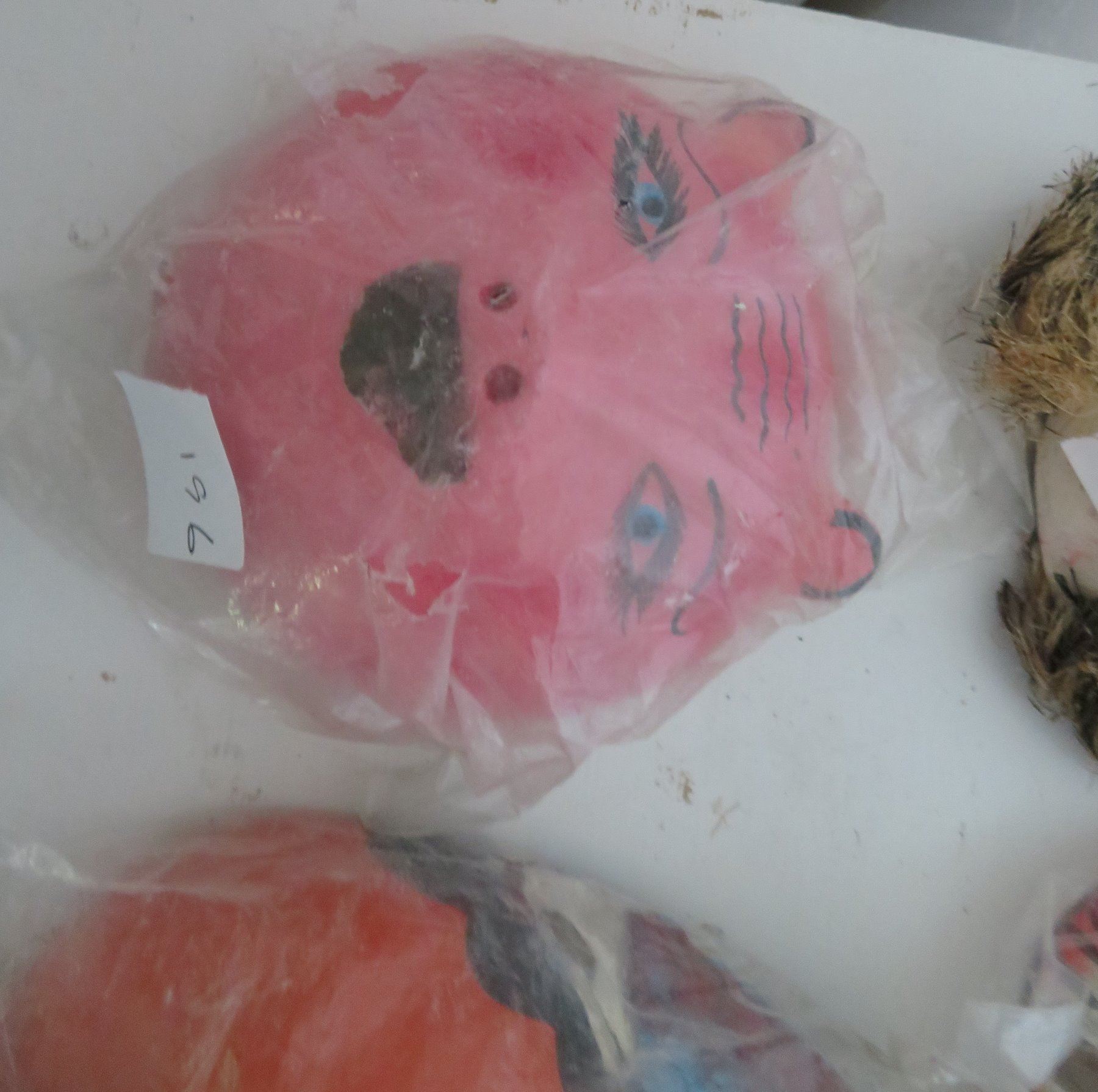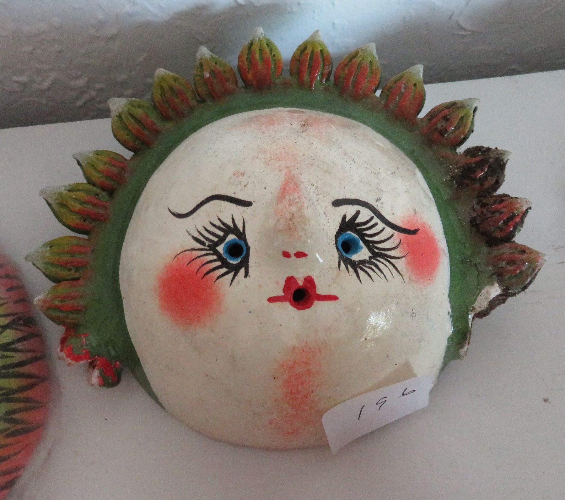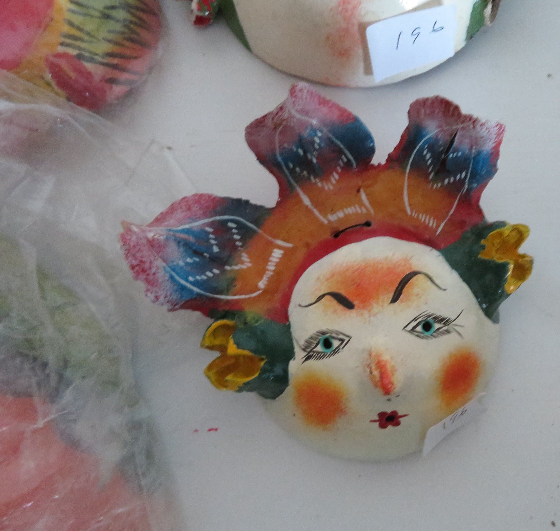 Mexican Mask Collection, c. 1940s. Made of coconut shell and paint, the largest measures 8" x 4". Nice colors, nice paint. Condition: Some scuffs, see images. Shipping: $35.00 w/insurance and signature, double-boxed, due to value and fragility.
