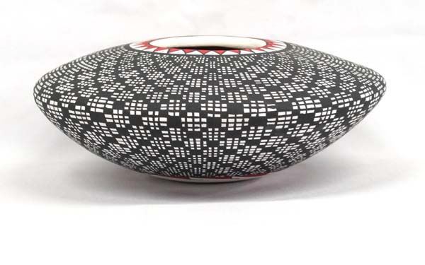 Mexican Mata Ortiz Polychrome Eye Dazzler Pillow Pot, measures 4.5''H x 11''D