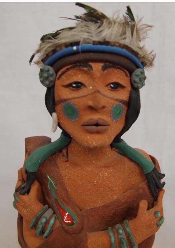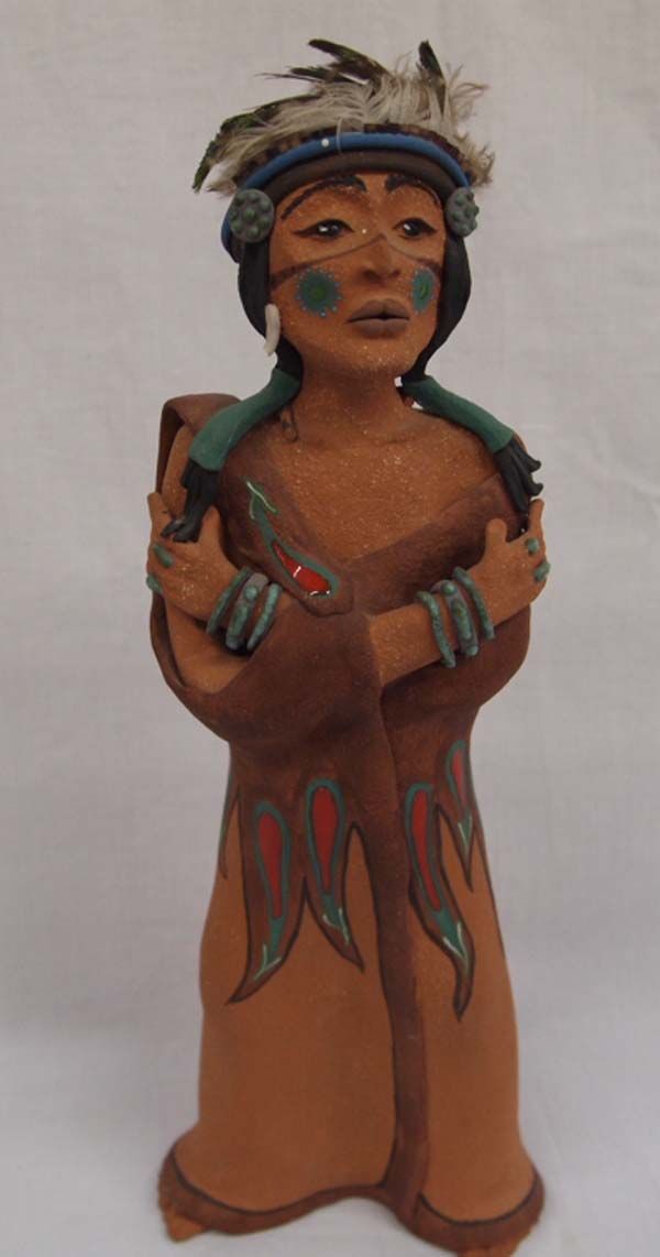 Mexican Mayan Indian Maiden Slab Pottery Figurine, has feather headdress. Maiden measures approx. 13''H x 5''W.