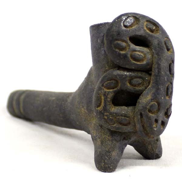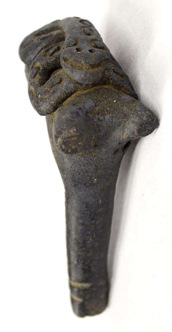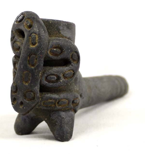 Mexican Mayan Style Pottery Pipe, measures 5''L