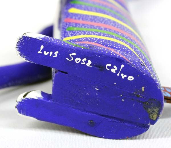 Mexican Oaxacan Alebrije Rabbit by Luis Sosa Calvo, signed on bottom by artist, measures 15''H x 6'' x 3'', vibrantly painted