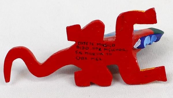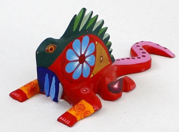 Mexican Oaxacan Iguana Alebrije by Aldo Hernandez Melchor of San Martin, measures 2" x 2" x 4.5" and is signed on the bottom
