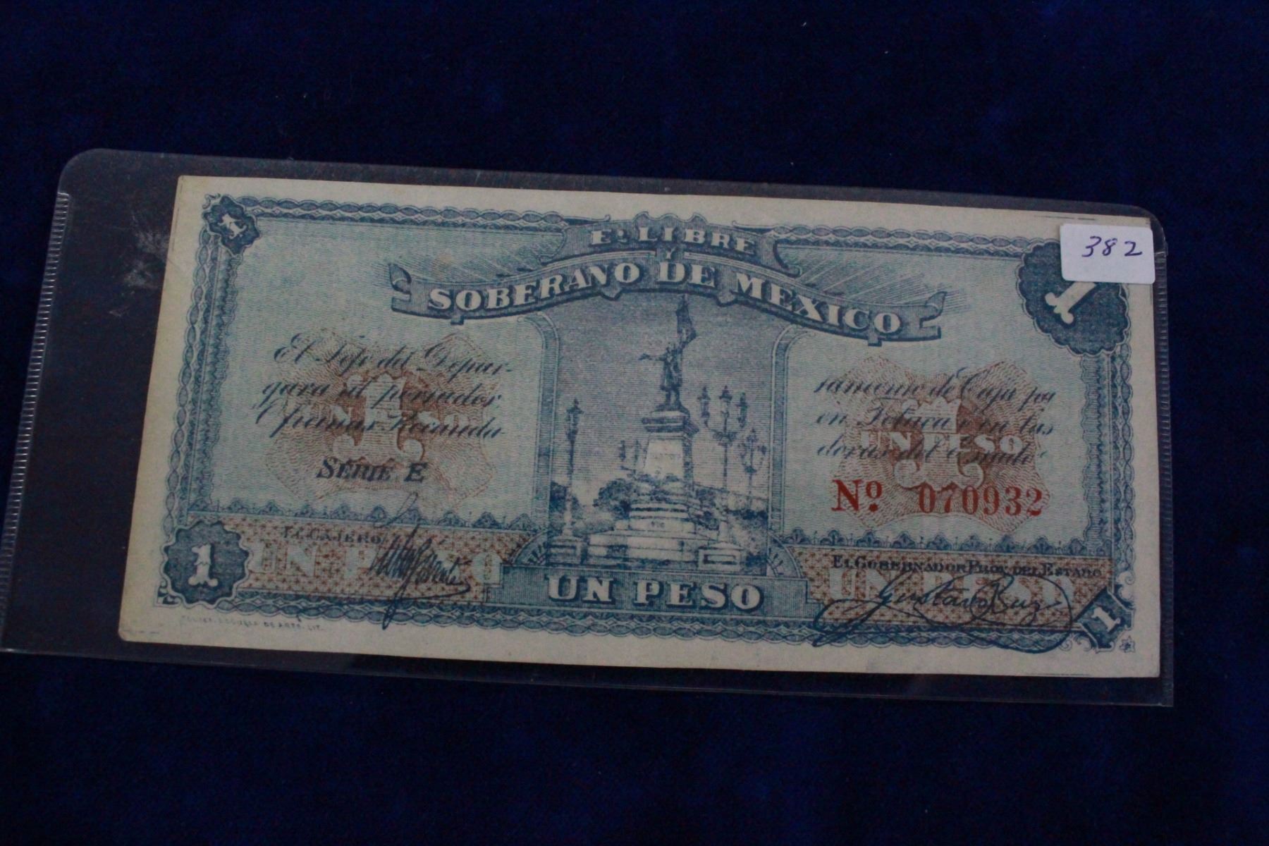 1915 "Soberano De Mexico"; Series E; No. 070932; Soberano De Mexico; Monedas Angel