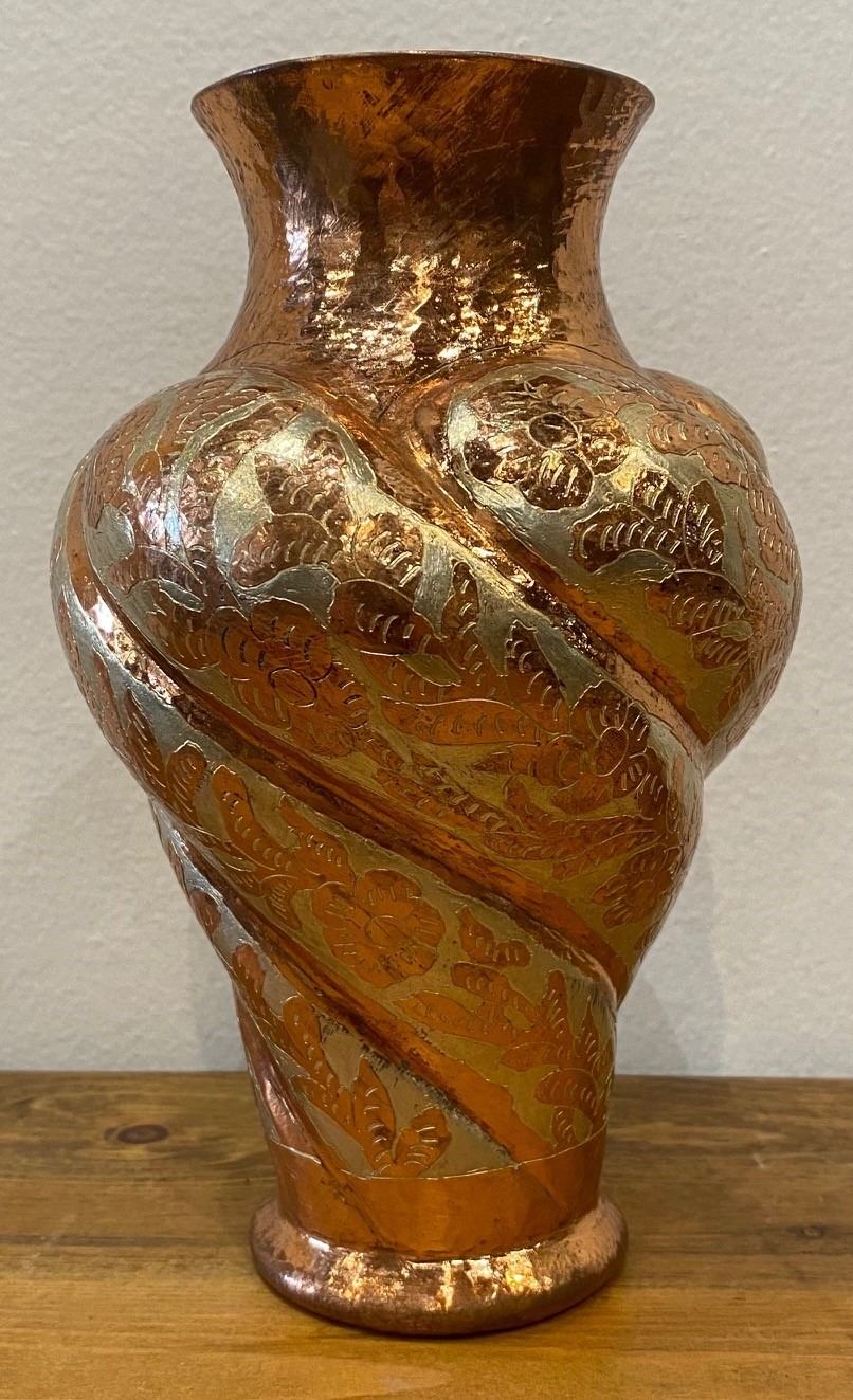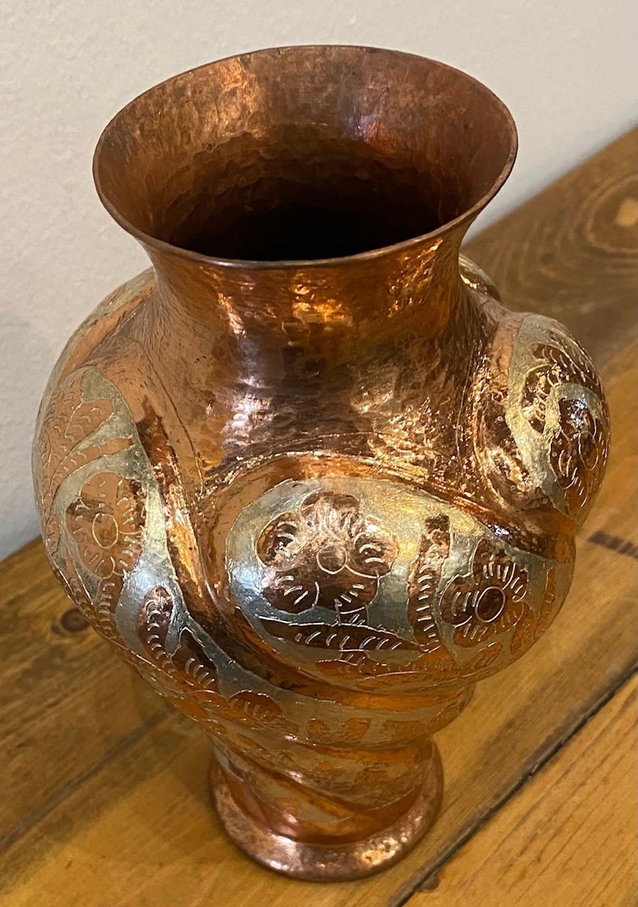 A very Ornate 460-gram Hand-Hammered Copper Vase with Elegant Flower Design. Out of Mexico.