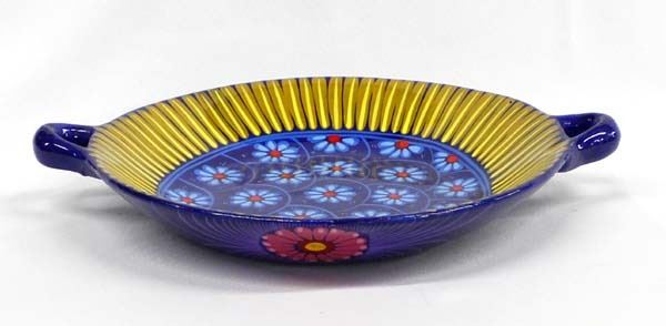 Mexican Pottery Bowl, Oaxacan, measures 10''D x 2''H, double handles, beautiful vibrant colors