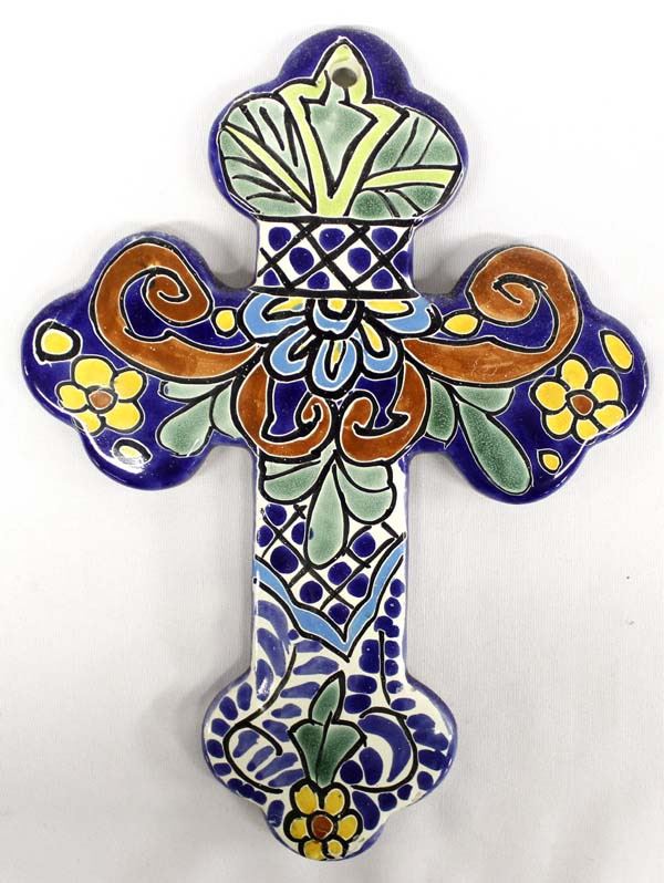 Mexican Pottery Cross, measures 8.5'' x 11''