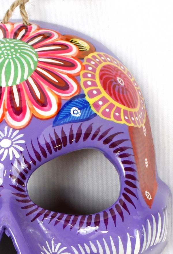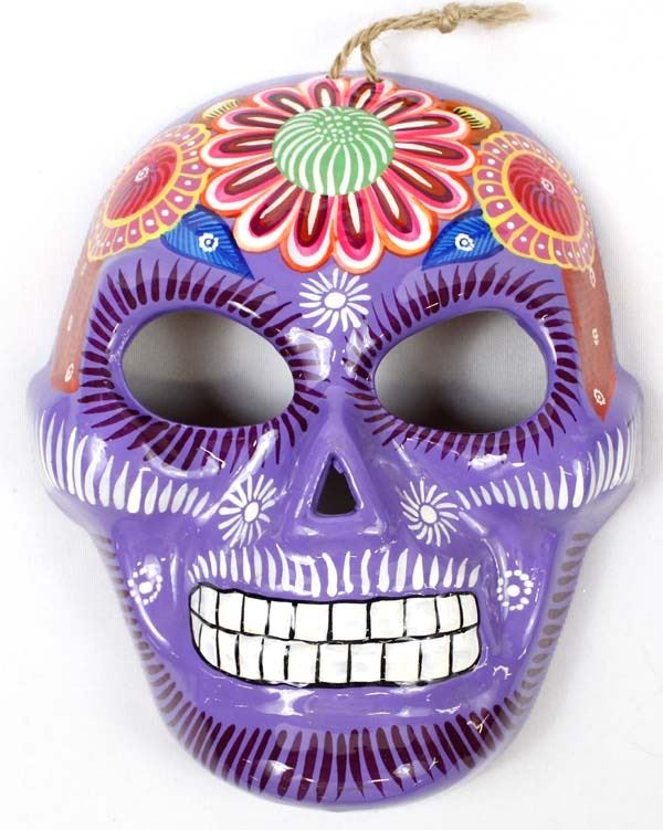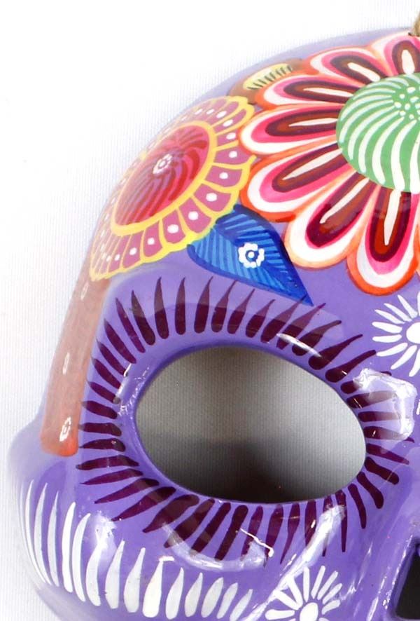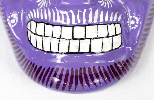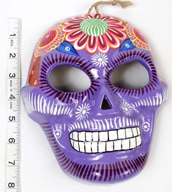 Mexican Glazed Pottery Day of the Dead Mask, measures 8.25L x 6.75''W, ready to hang