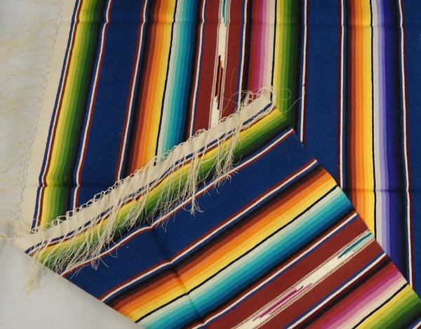 Mexican Rainbow Textile. Measures approx. 96'' x 68'' not including the fringe. SHI $20.