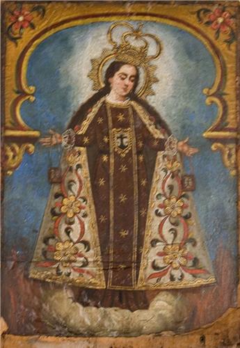 Mexican Retablo. 19th Century. Handpainted on board. 15 ½” x 10 ½”. Good condition. (est $500-700)