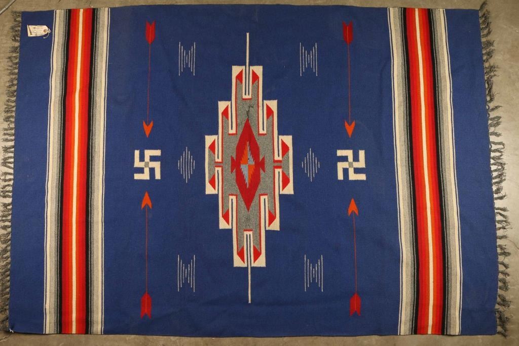 colored black, white, and grey, wool. Good overall condition. Also includes Mexican blanket.
