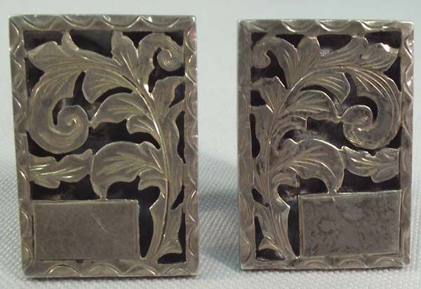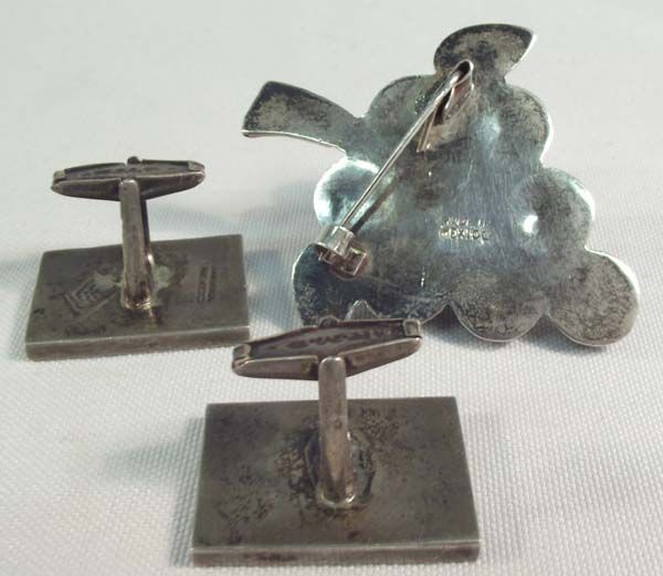 Mexican Silver Cuff Links & Grape Pin. Cuff links measure approx. 1'' x 3/4'' and are .925 silver. Pin measures approx. 2 1/4''L x 2''W.