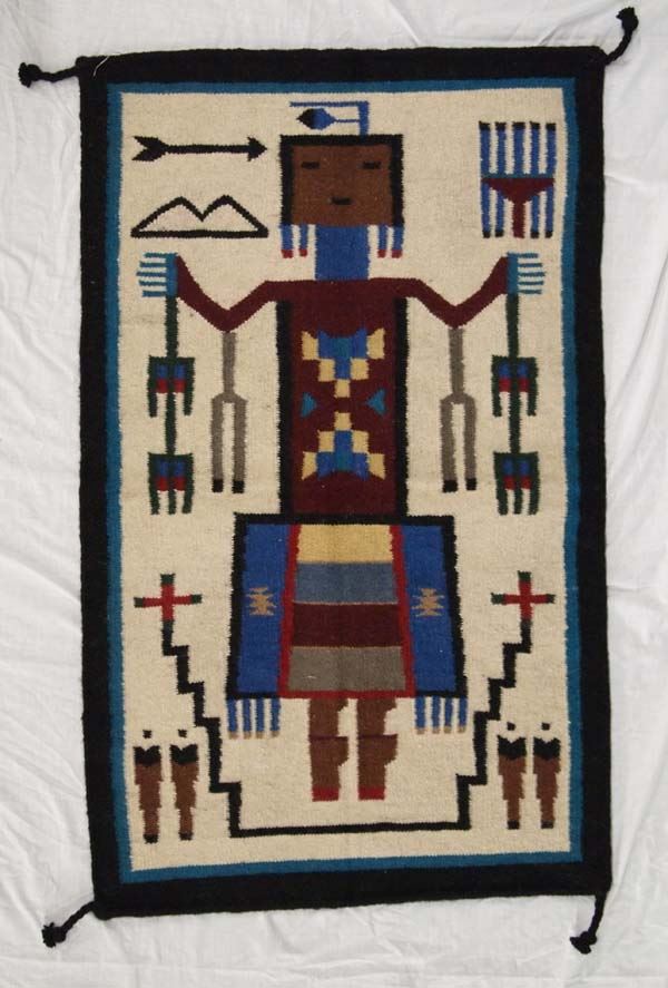 Mexican Single Yei Textile Rug, measures 45''L x 28''W, vibrant colors, 4 cornered tassels intact