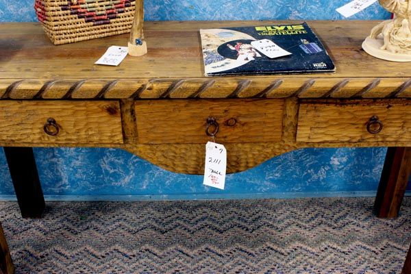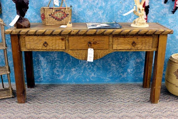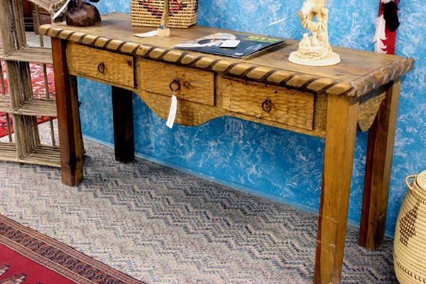 Mexican Sofa Table. Striking piece of carved Mexican furniture. Large sofa table, measuring 60'' in length, 17'' wide and 30'' tall. MUST BE PICKED UP