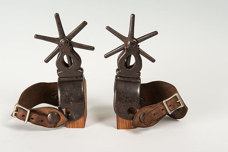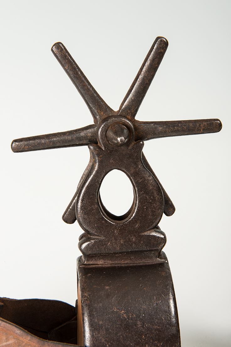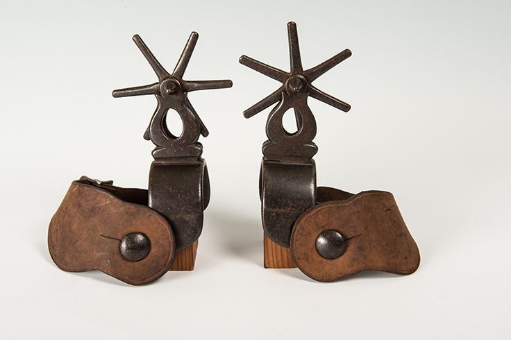 Mexican Spurs. 4 ½", six-point spoke rowels. Black iron. 19th century.