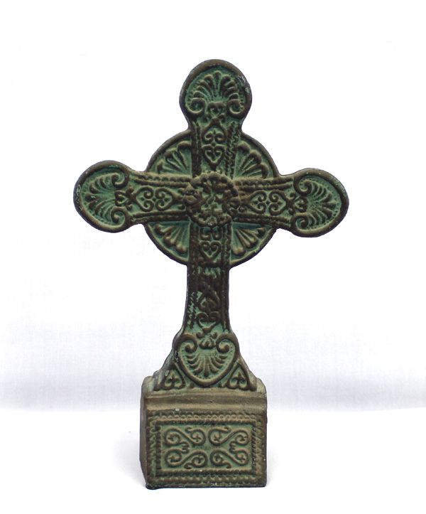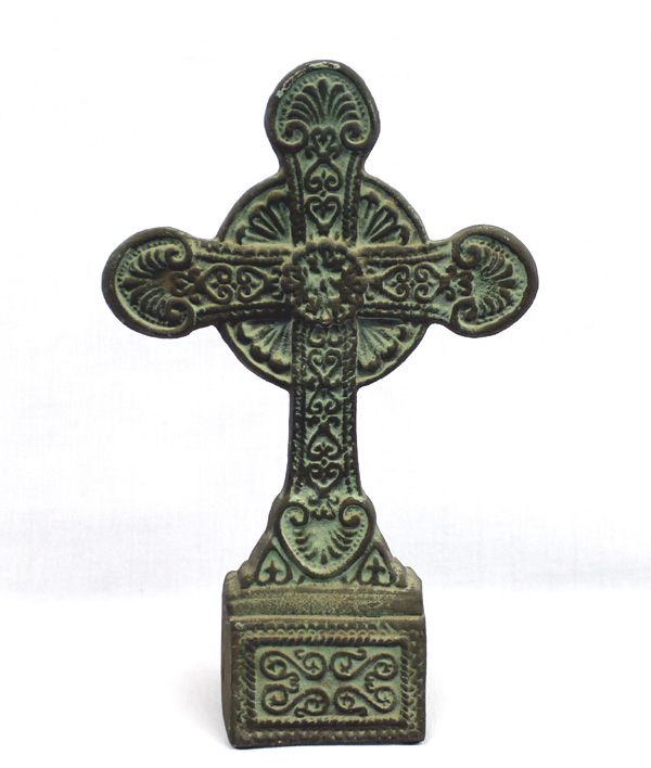 Mexican Standing Cast iron Cross. Nicely decorated and in good condition. Measures 11.75''H x 7.5''W.