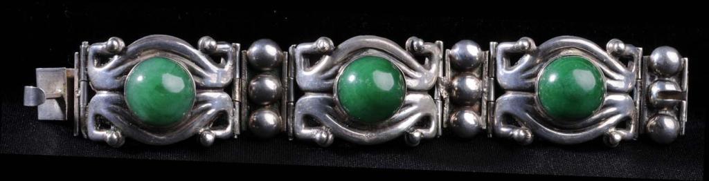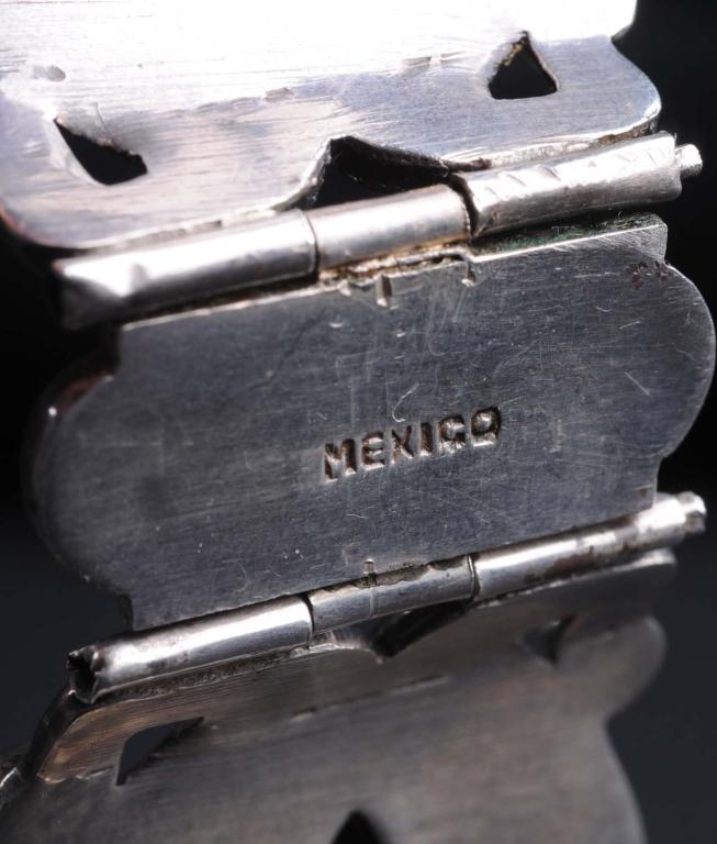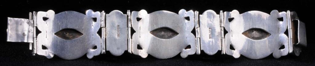 Description Marked "Silver" and "Mexico". Heavy-link bracelet with three one-inch links and three .625-inch stones. Condition (Excellent). Size 6 - 1/4".