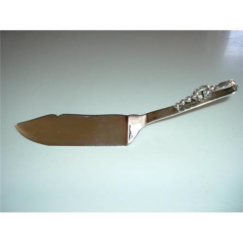 This lovely piece can be used to serve pie, fish, cake etc. It is marked Sterling, 925, Hecho en Mexico, L.M. and has the Bell Hallmark. It is 9" long. The formed repousse handle is beautiful. There are some signs of wear.