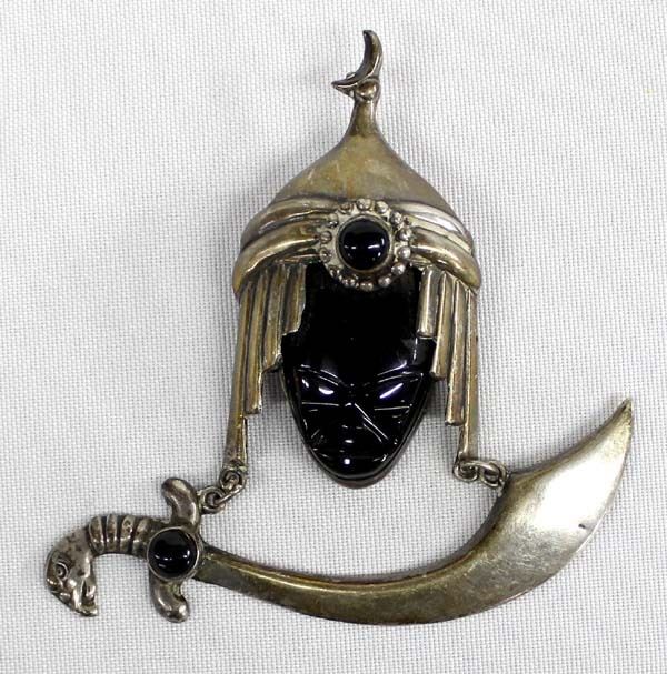 Mexican Sterling & Onyx Saber Pin, measures 3'' x 3.5'', marked Sterling Mexico