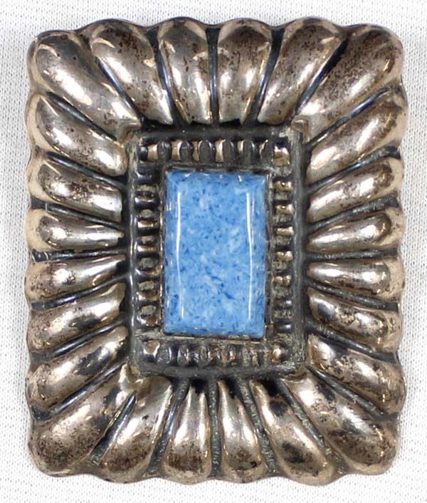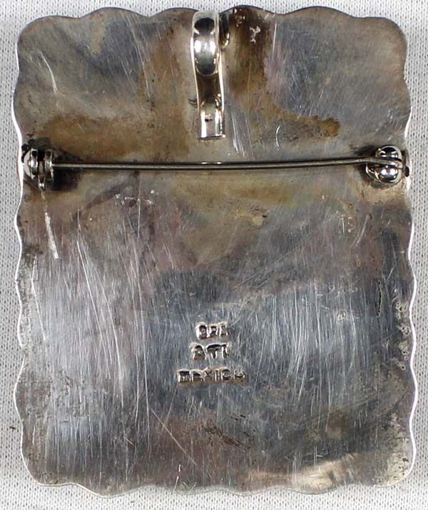 Mexican Sterling Silver Denim Turquoise Pin Pendant, stamped Mexico, .925, ATI and measures 1.75'' x 2''