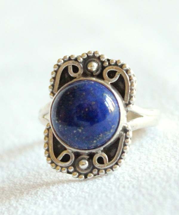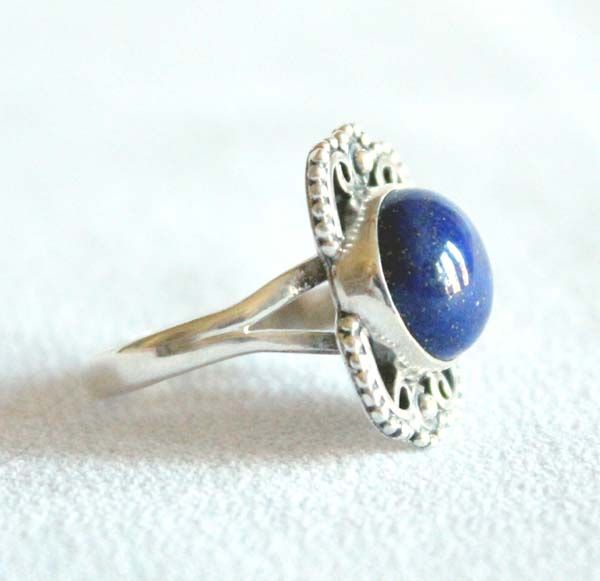 Mexican Sterling Silver & Lapis Ring, Size 7. Weighs 4.75 grams, cabochon size is 14mm x 20mm.