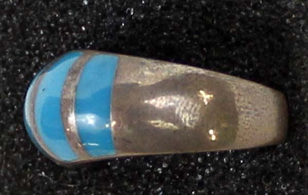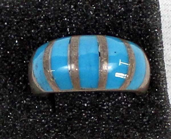 Mexican Sterling Turquoise Ring, Size 8.25, measures 3/8''W