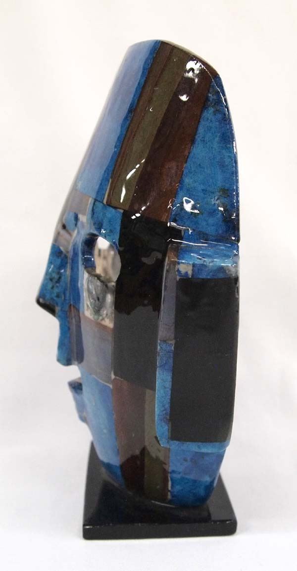 Mexican Stone Inlay Mask on Stand, measures 8.5'' x 6.75''